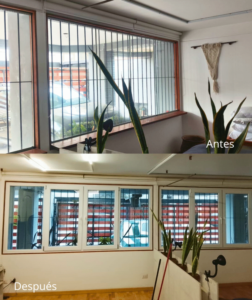 Reemplazamos estructuras antiguas por sistemas modernos de PVC, logrando un ambiente más silencioso, estético y eficiente.