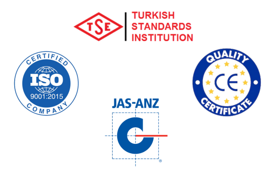 Certificaciones: ISO 9001:2015 · CE · JAS-ANZ · TSE